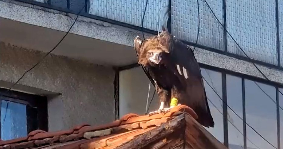 Лешоядът е част от ято, което обитава Кресненското дефиле, и носи пръстен с GPS координати. Лешоядът кацнал върху къща в Разлог, докато търсел храна.