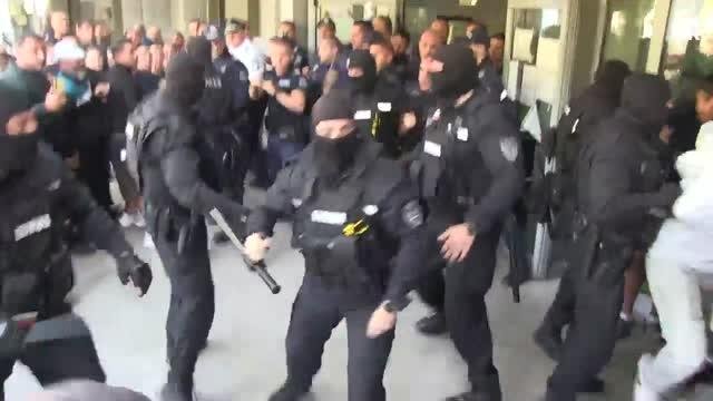 Протестиращите нахлуха в АГ-комплекса на Университетска болница „Канев“ и се наложи намесата на полицаи от специализираните сили.