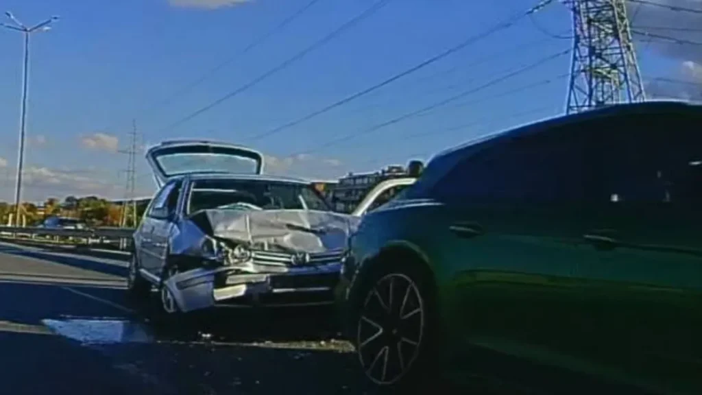 За инцидента алармират пътуващи. Един шофьор сподели и три снимки от удара, който изглежда жесток. На кадрите, които бяха споделени в социалните мрежи – се вижда как предницата на сивия „Фолксваген“ е изцяло разбита. Не става ясно дали по луксозната кола има щети, нито пък какви са те.