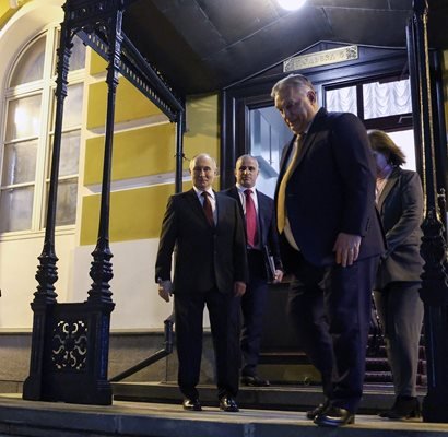 Путин и Орбан се ръкуваха на входа на Сенатския дворец, обмениха няколко думи, след което унгарският лидер се качи в подготвената за него руска лимузина „Аурус“.