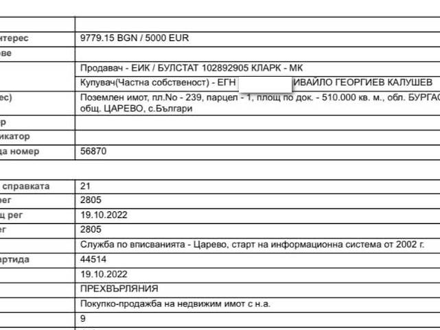 Ето какво фигурира официално в имотния регистър като собственост на Ивайло Калушев на територията на община Царево. Остава загадка чии са останалите декари.